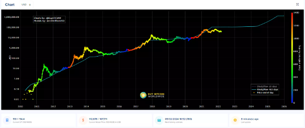 根據該模型,BTC當前預估價格應該在10萬美元上方,目前實際價格不到39000美元,偏離較大。若該模型有效,價格處於嚴重低估狀態。