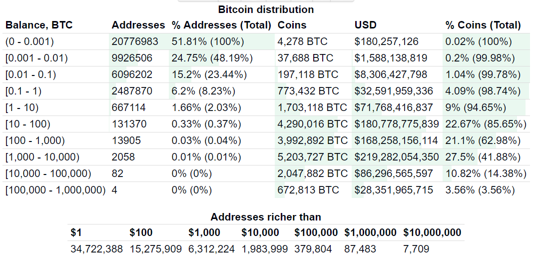 目前,全球人口約79億,而比特幣總量不到2100萬枚,因此擁有比特幣的人數本身就不多。但是,在這些為數不多的擁有比特幣的用戶中,本身也存在著很大的貧富差距。