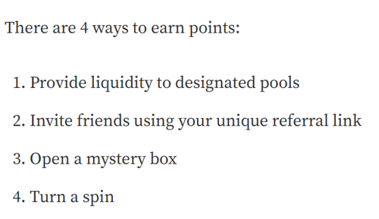 根据官网规则说明,获得积分有4个途径,1质押、2拉新、3开盒子、4大转盘。1和4同源,都需要质押资产。2和3同源,拉新不但会获得积分,每个邀请者和受邀者都能开盒子再获得积分。