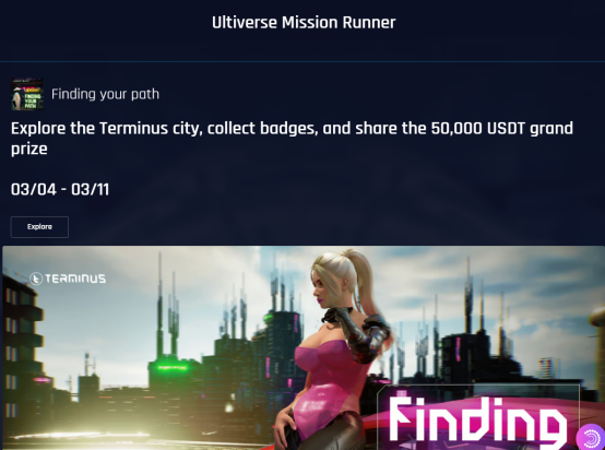7.点击主页面右边mission,再点击页面上方mission runner,这里有一些系列任务。比如3月开启的铭文打造任务,一方面有利于世界探索的收货,另一方面完成系列任务有机会获得项目方的usdt空投奖励。