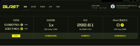 5.需要注意的是,质押在RING这边的ETH和usdt就不再计算在Blast主网积分累积中了。