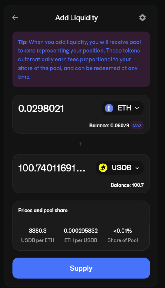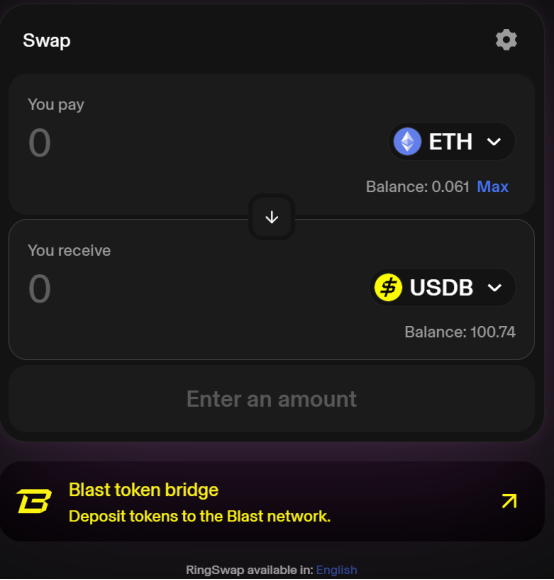 目前Blast主网主币为USDB,价值为1usdt,使用ETH换取时收取0.3%手续费。