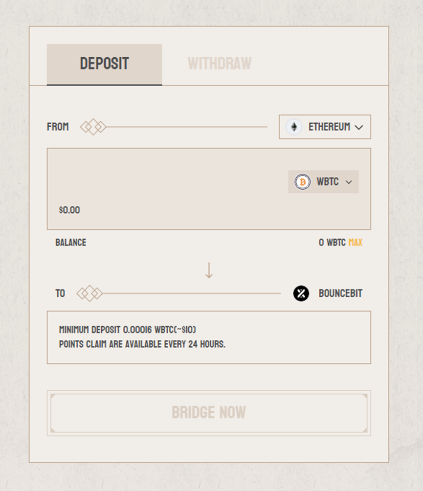 2.质押。主页面进入就是质押界面,这是目前获取代币的主要手段。eth链可以质押wbtc,bnb链可以质押btcb。大家根据自己钱包余额选择对应的链条进行换币即可,同一个链gas费用不会太高。