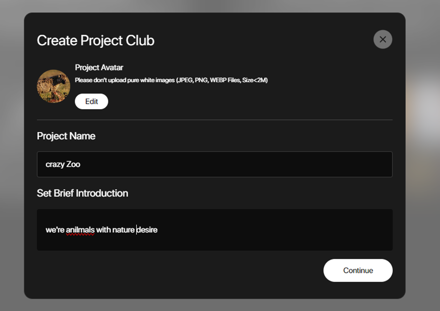 点击项目俱乐部,创建名字、简介、头像。创建时需要测试BB代币。可以去官方DC水龙头领取。
