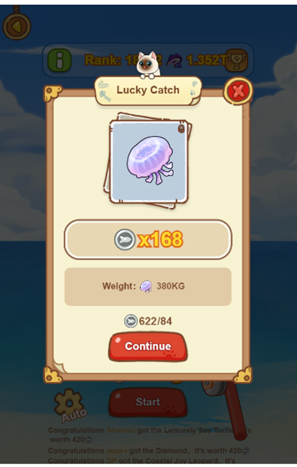 6.完成每日任务后,点击页面左上方fishing,钓鱼给的猫粮很多,比每日任务多很多。猫粮能够让你更快速累计金币。