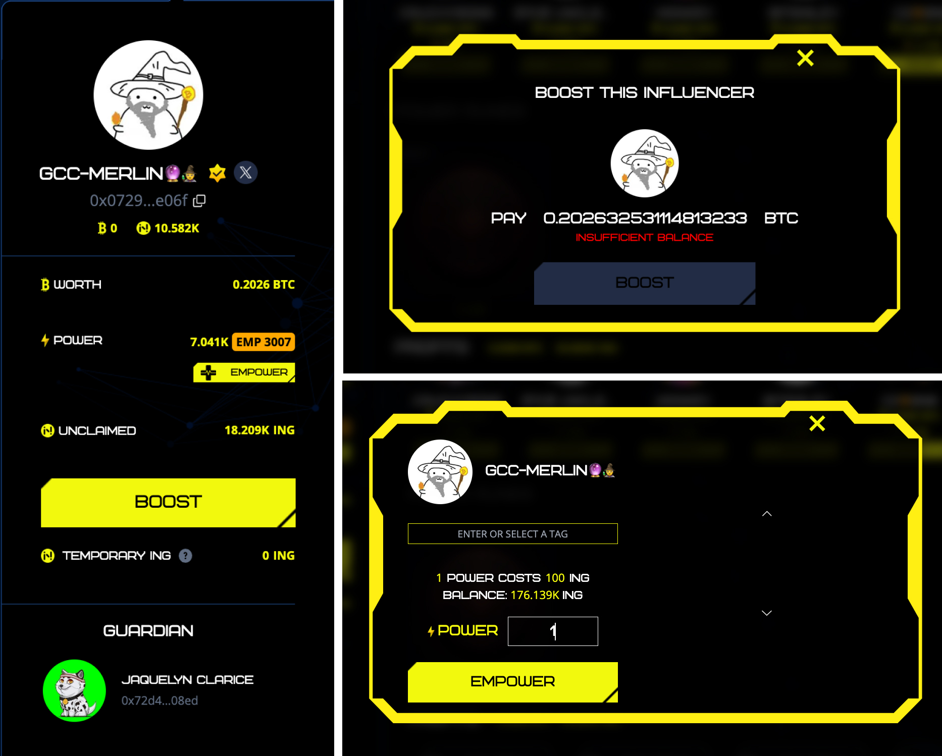 $INF 是源自于首发在 merlin chain 上采取多链部署(目前部署的有 Merlin、Bitlayer)、公平发射 $ING 的属于 socialFi 赛道的 Influpia 项目的生态,其最初的玩法主要包括两方面: