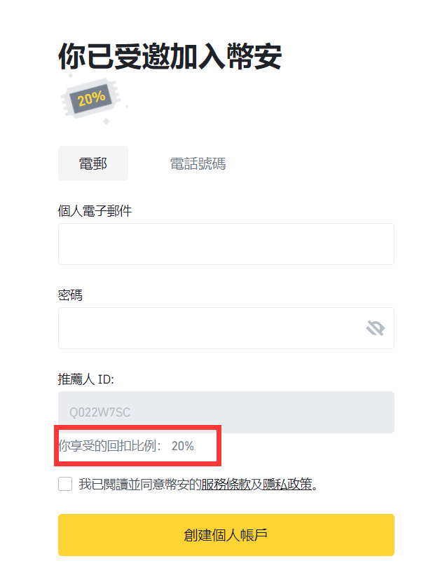 一定要輸入這個邀請碼,不然你拿不到20%的返現比例。
