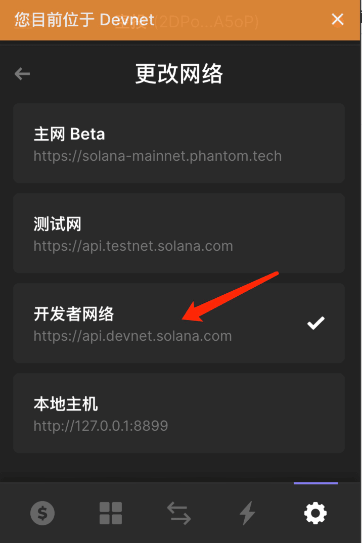 2 将钱包切换到Devnet 测试网