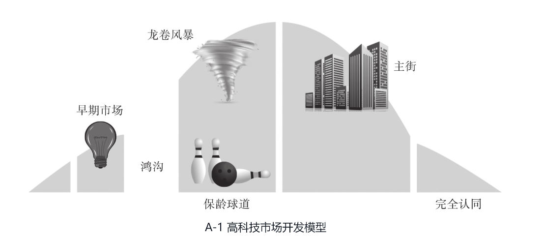 根据《跨越鸿沟》书中提到的高科技市场开发模型: