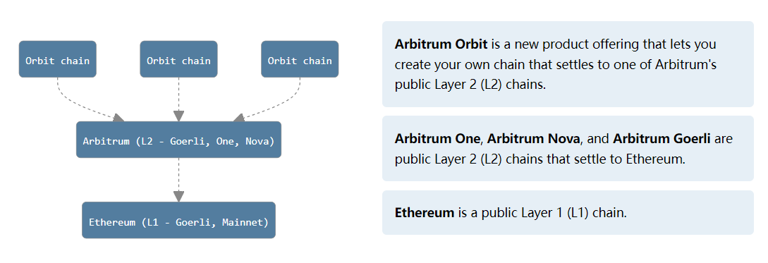 与OP Stack针对Layer2市场不同,Arbitrum Orbit是Arbitrum发布的基于Arbitrum生态快速搭建Layer3的框架。
