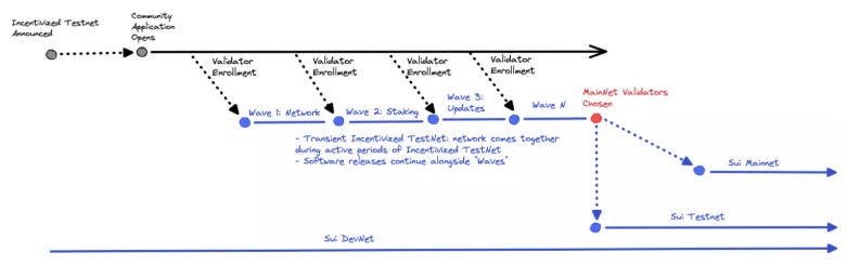 Sui官方已于8月宣布开启激励测试网,验证者、开发者、Sui 爱好者都可以申请参与。Sui 基金会将为验证者参与的每个测试网「wave」奖励 2000 SUI,并承诺将高达供应量 10 % 的 Sui 代币质押给继续参与 Sui 主网的表现最佳验证者。SUI 代币奖励仅在 Sui 协议主网上线后提供,并有一年的锁定期。