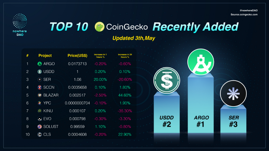 On May 3rd, we updated the TOP 10 CoinGecko Recently Added on Twitter. Please feel free to check the updates.