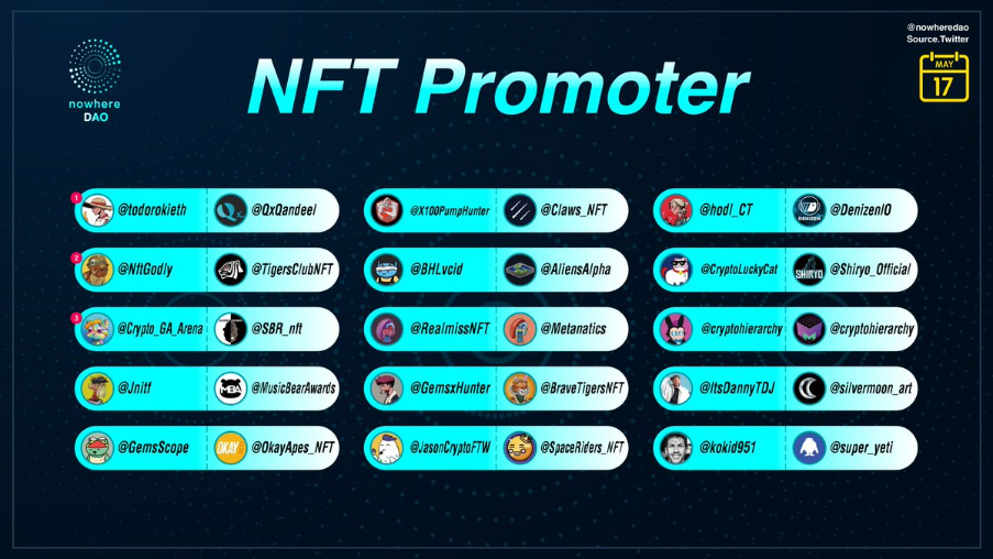 On May 17th, we updated NFT Promoters and Projects on Twitter. Working with the right influencers for your brand is the quickest and most effective way to position your project front and center.