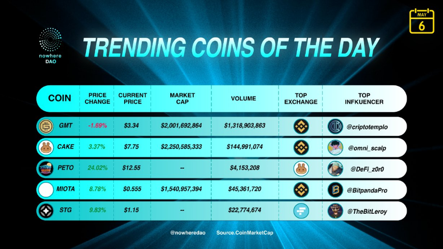 On May 6th, we updated Trending Coins of the day on Twitter. Check this graph and find out the new trending coins and the top influencers.