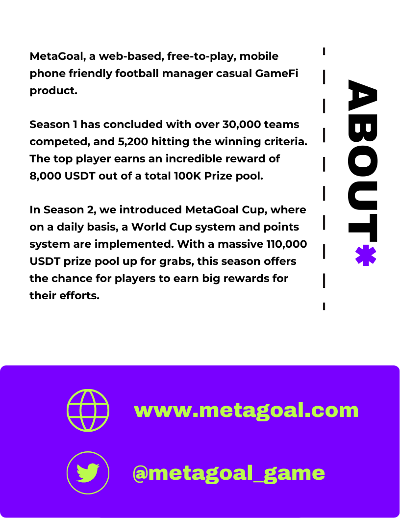 Stay up to date with MetaGoal Season 2 news and updates with The MetaGoal Insider. Every week, it brings you the best of what’s happening inside the game — from upcoming special events to optimizations made. Our team actively listens to our community and ensures their voices are heard by sharing feedback and responding quickly. Be part of the action — Stay tuned with The MetaGoal Insider and never miss a beat!