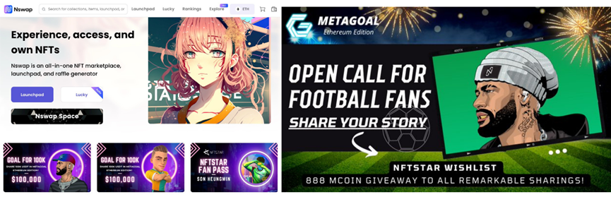 In addition to this extraordinary show of effort from within the gaming community itself, there have been several collaborations formed between dozens of projects and communities collaborating with NFTSTAR and MetaGoal, including NSWAP and NFTGO. Some proudly promoted MetaGoal on their official websites.