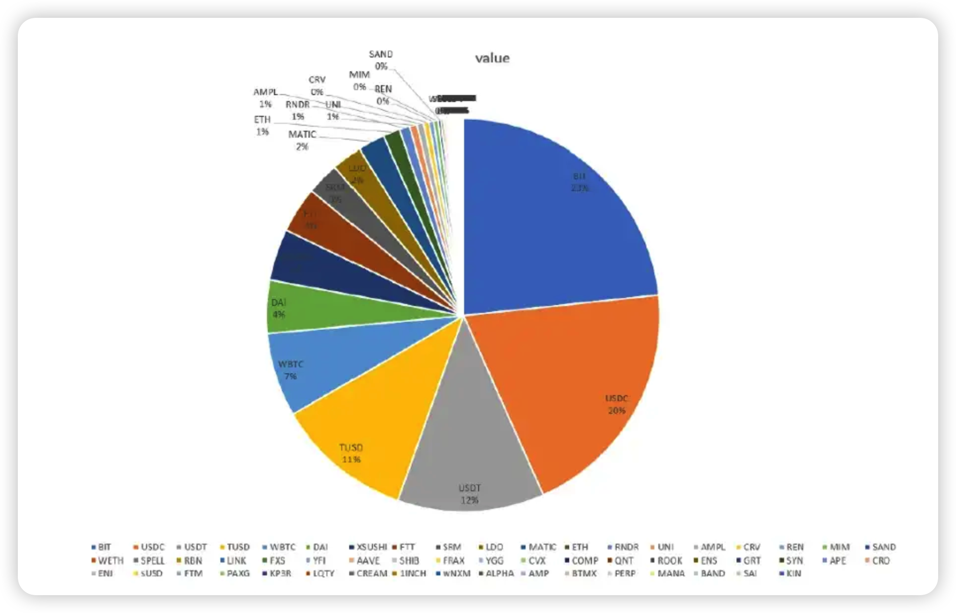 我們分析了Alameda的資產情況,目前Alameda的可監控錢包持有價值排名靠前的代幣如下:BIT、SUSHI、FTT、SRM、LDO、MATIC、RNDR等。