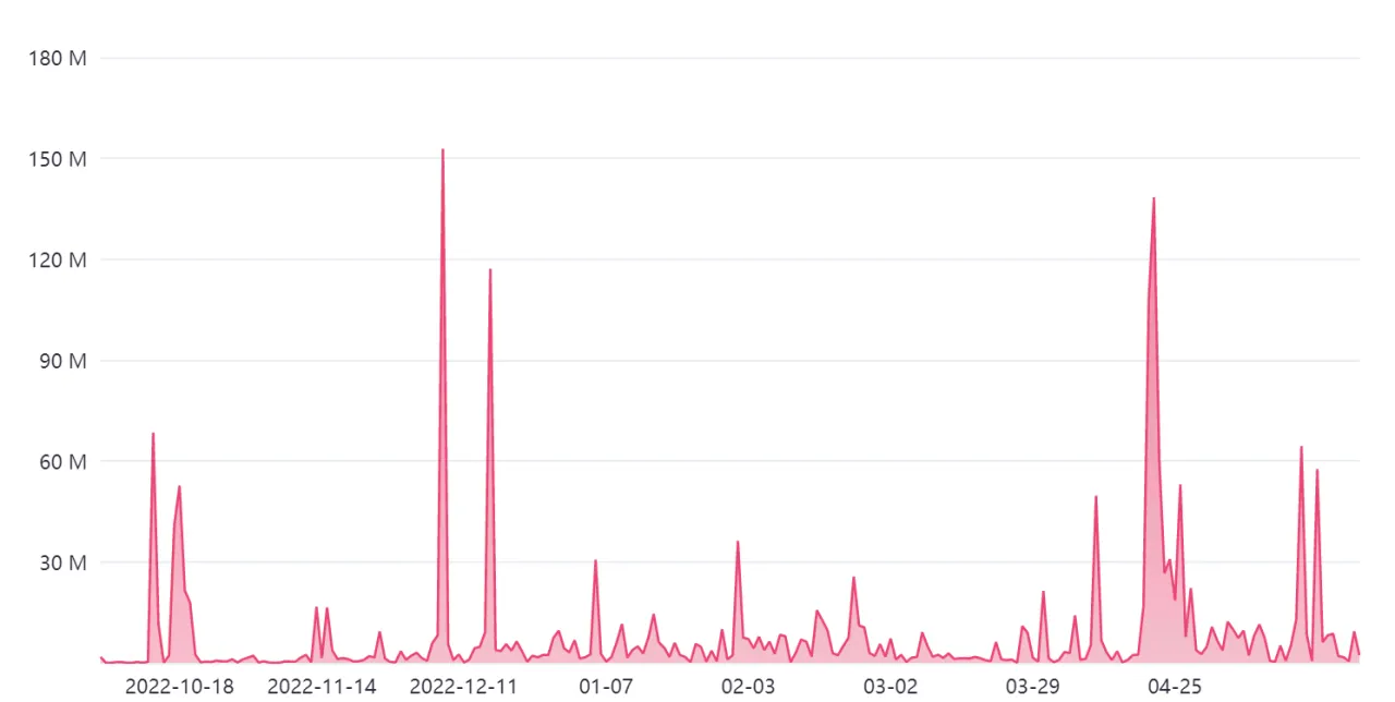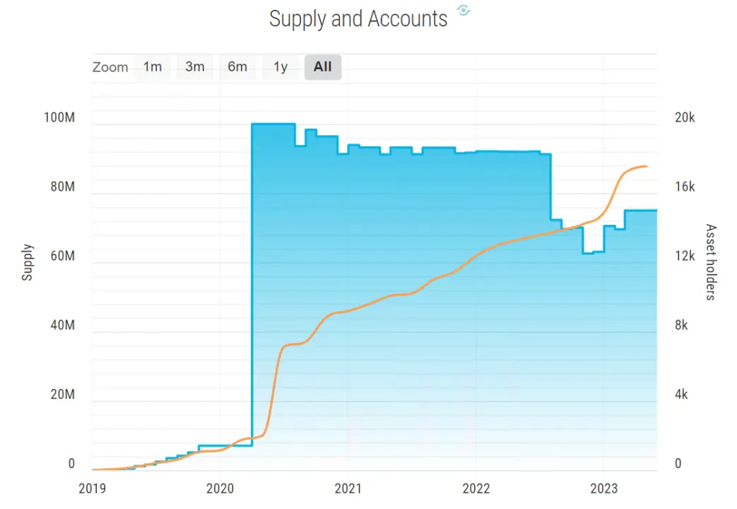 目前,已经有3.8K的账户,357M枚$POLYX代币在质押,占总发行量的47.7%。43个节点运营商。链上每日交易量在2K~11M $POLYX不等。在4月20日期间,由于币安宣布成为其节点运营商,链上转账数达到138M。