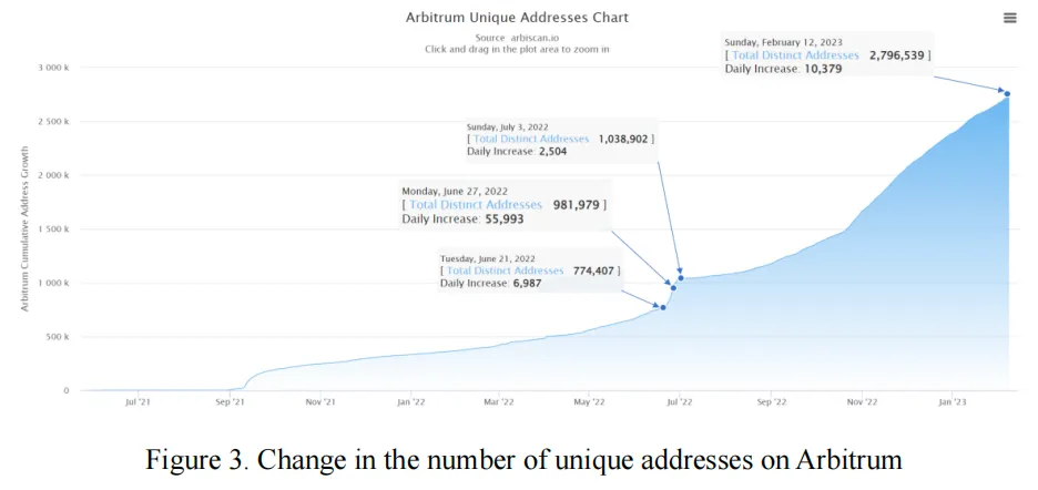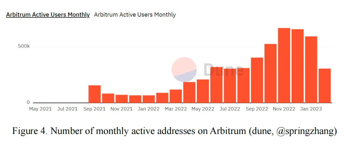 The performance of Layer2 is second to none at the beginning of 2023, which is in line with the predictions of most institutions and influencers. In terms of token prices, Optimism, Polygon and token on Arbitrum eco are also superior, for example, the token $OP peaked at $3.17 in February and $MATIC peaked at $1.32. As new L1 chains, such as Solana and Terra, are volatile under the influence of the incidents in bear market, the future will still be dominated by Ethereum; it is arguably that the competition yet to come will be between new L1 chains and Layer2. With a small climax in the crypto market, Arbitrum is the vanguard among others.