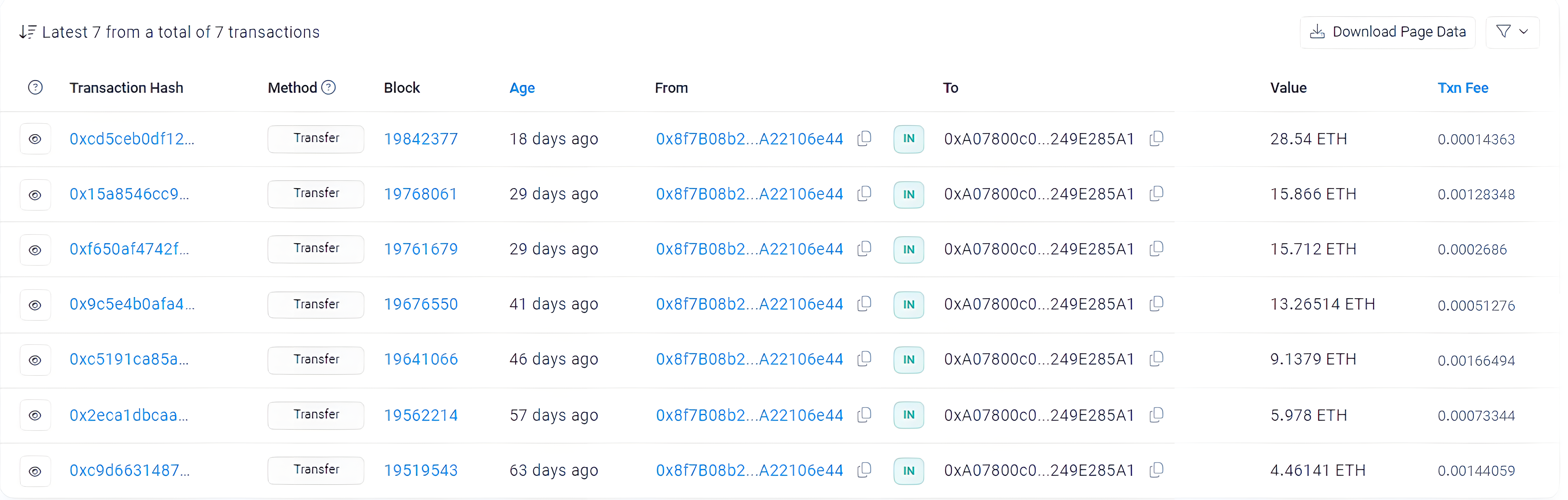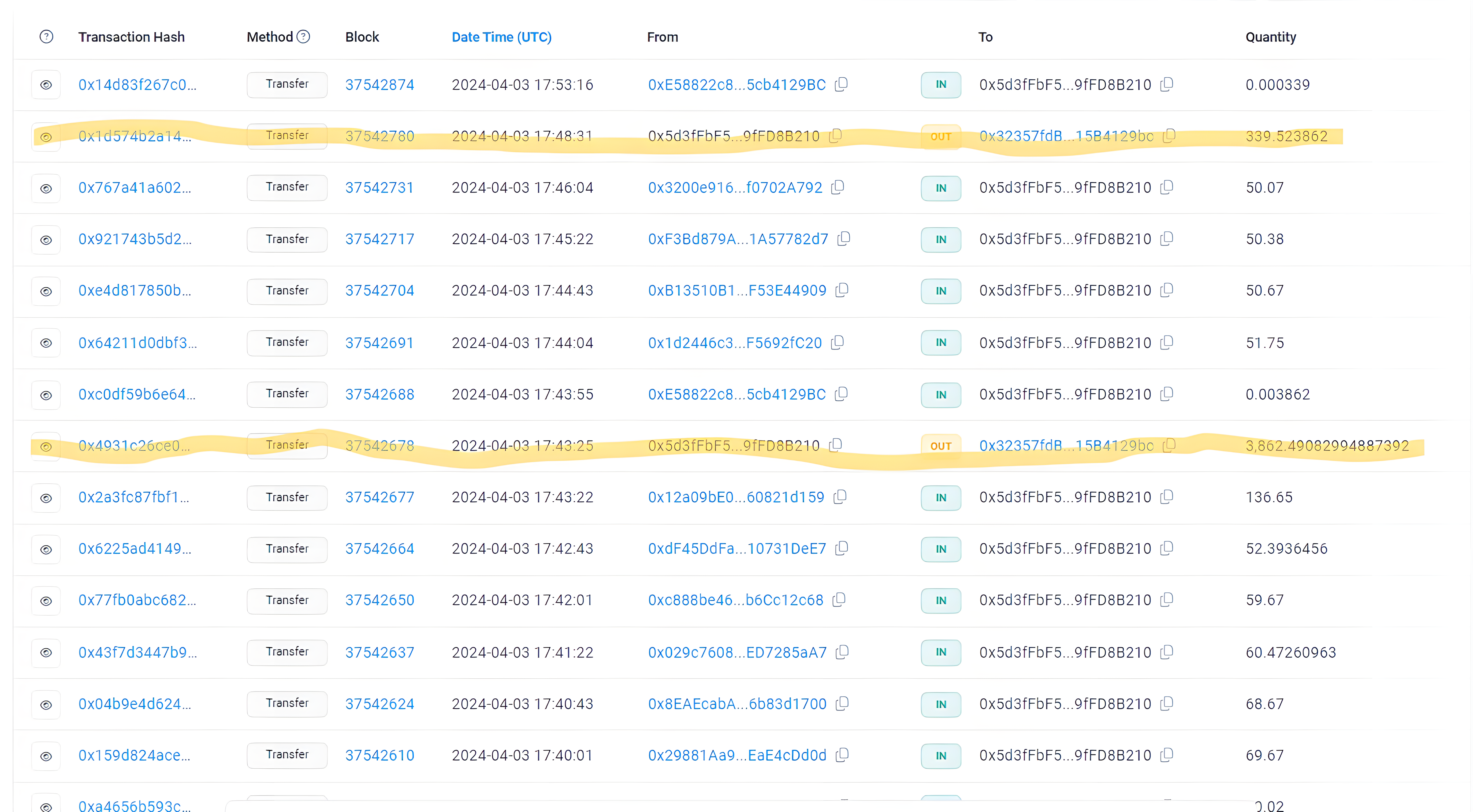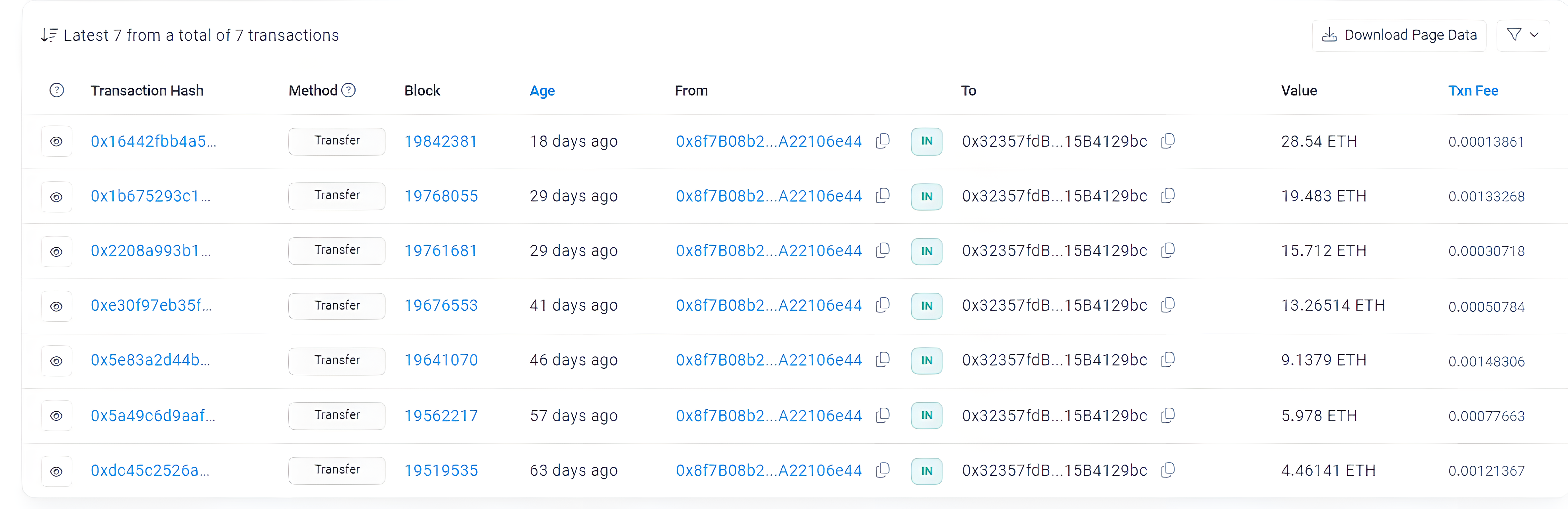 Podemos ver como los fondos van llegando a esta dirección: