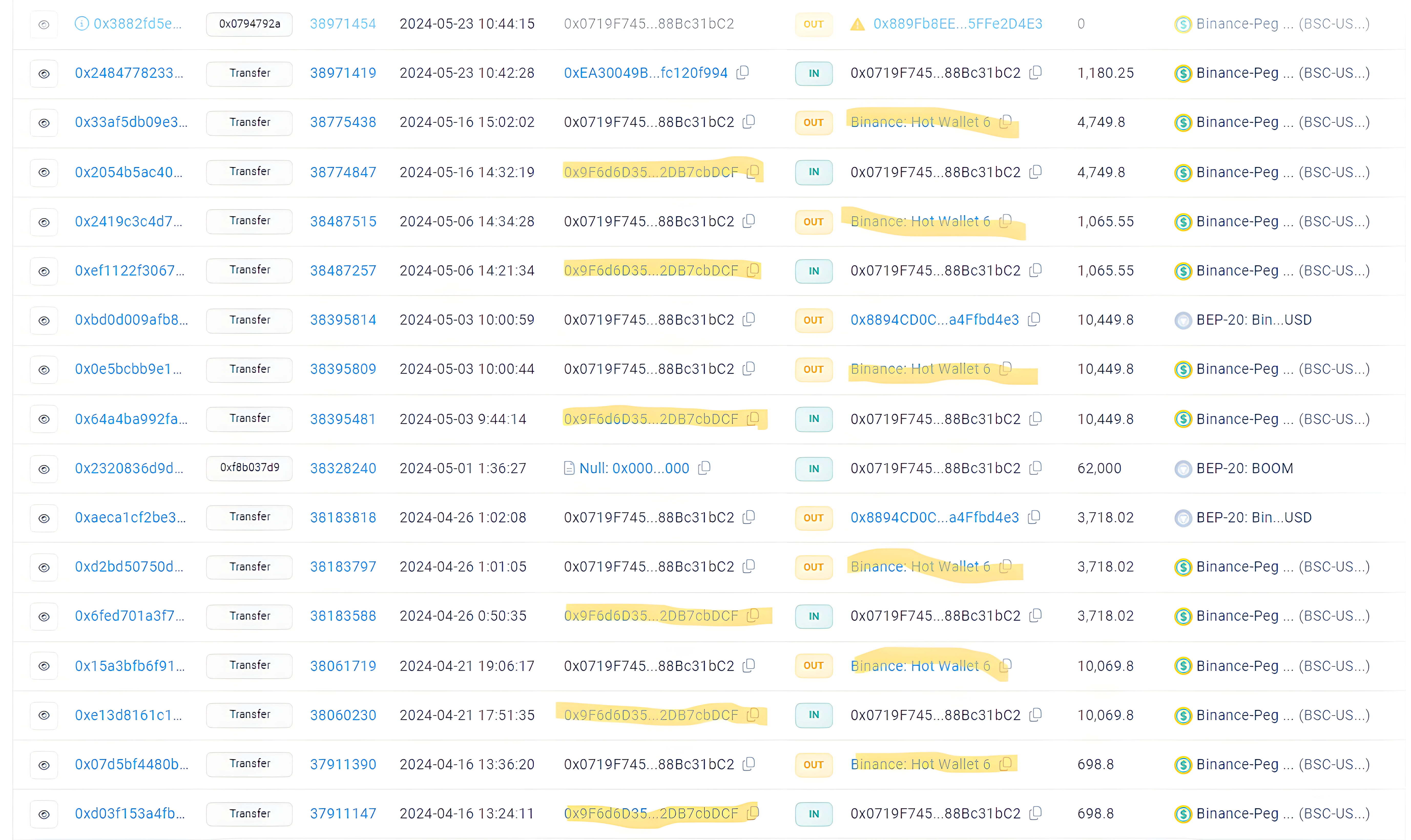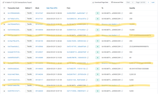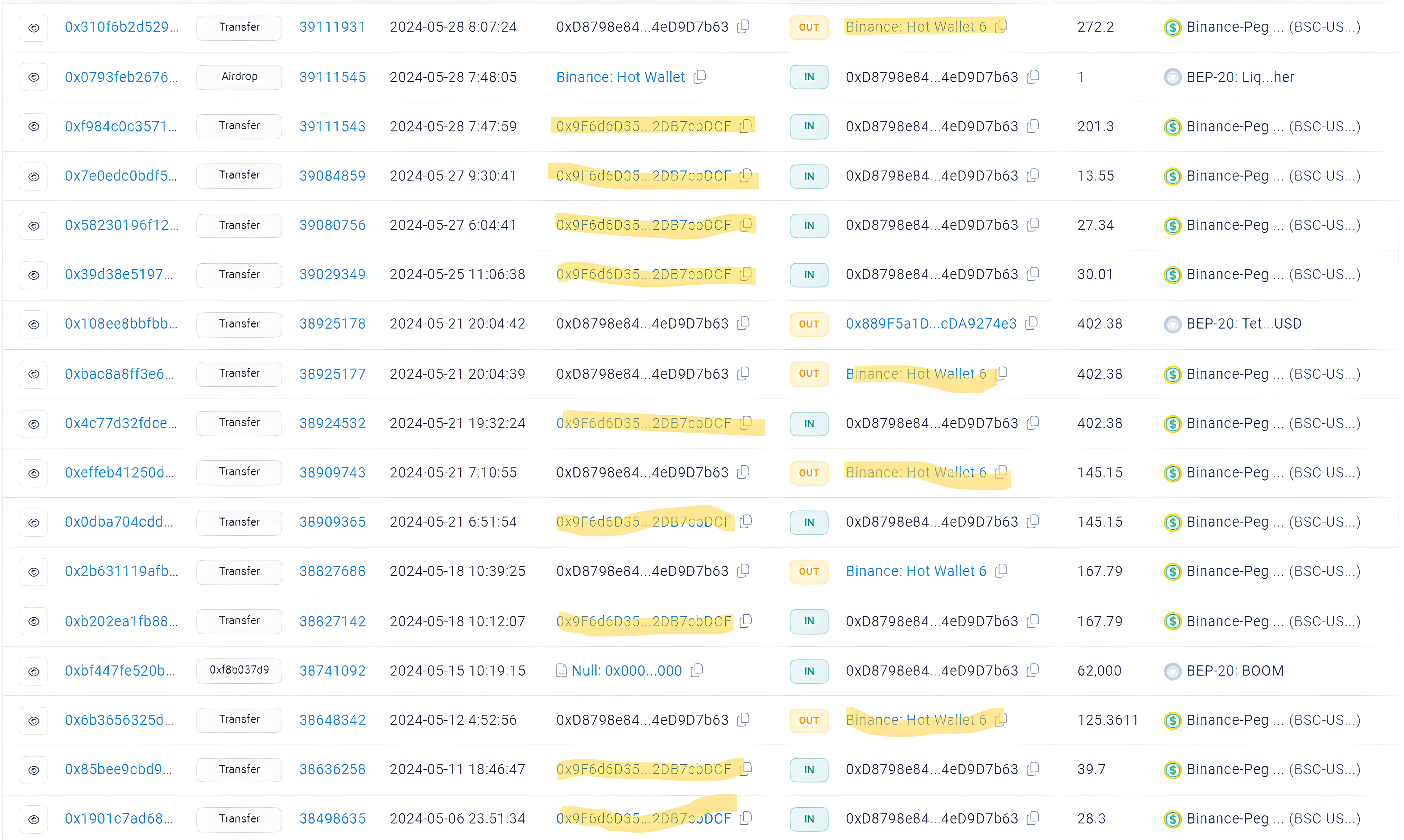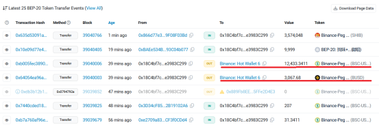 Esta misma dirección usada para enviar los retiros también envía a una dirección que posteriormente la enviara a una hot wallet de Binance: