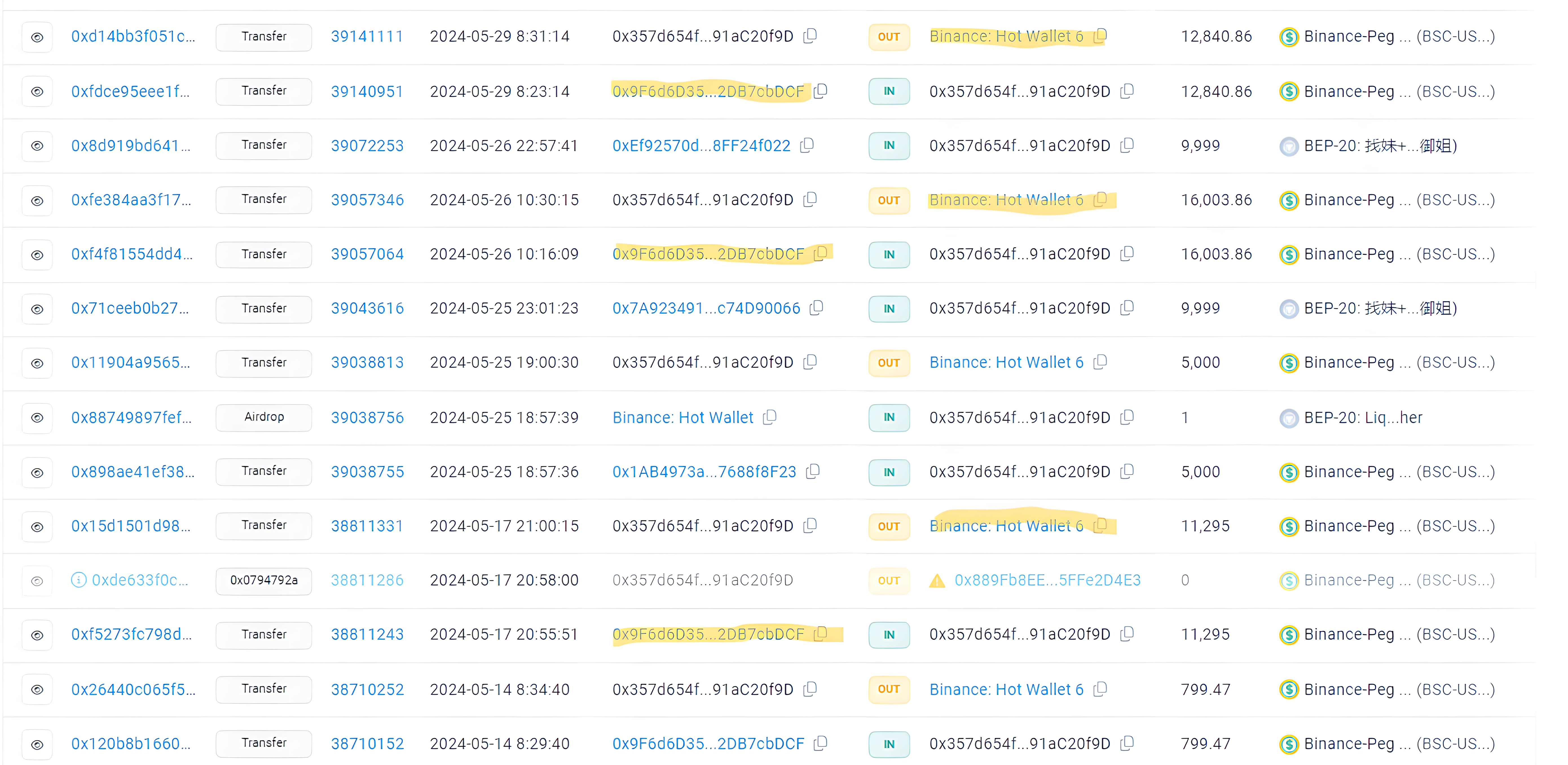 0x18c4A0d9c9A3e20Aec70Adad3A7ED56B5083c299, Desde la cual hacen retiros a una hot wallet de Binance