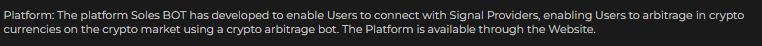 En los términos y condiciones de Solesbot mencionan que conectan a los usuarios con “Proveedores de señales” que luego el bot utiliza para realizar los arbitrajes: