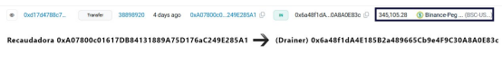 Ya sabemos que la dirección “Pagadora” se encarga de distribuir las supuestas “Ganancias” a sus usuarios. Enfoquémonos en las otras dos imágenes. Primero veamos lo que pasa con la dirección Drainer: