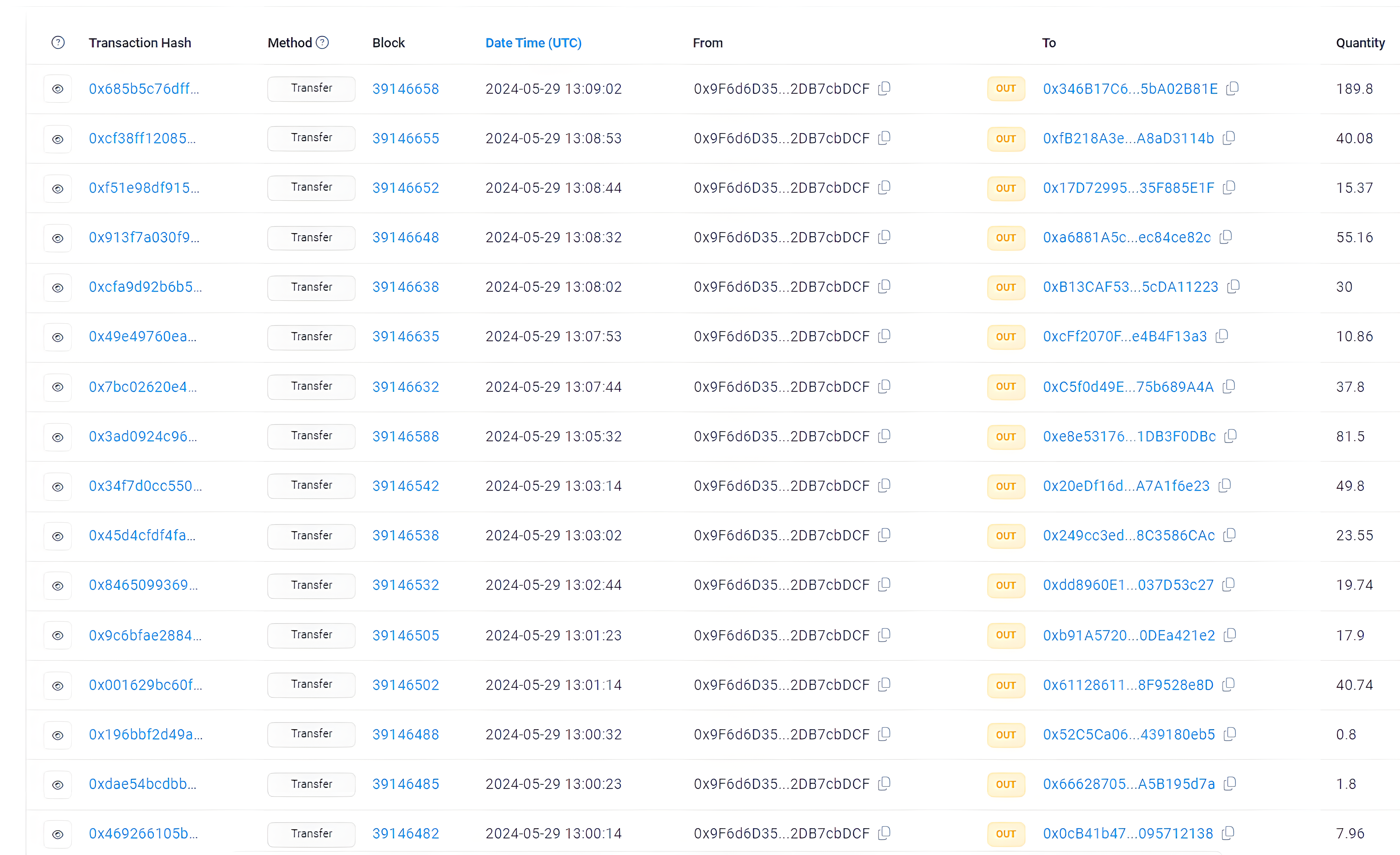 0x9F6d6D35C6a74DB113e868b3Ac290a72DB7cbDCF Esta dirección es comúnmente usada para enviar los retiros de los usuarios. Acá vemos los últimos envíos realizados: