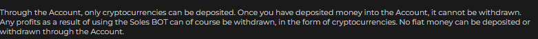 He preguntado a varios usuarios de Solesbot si me podían demostrar que la plataforma les dejaba retirar su capital cuando quisiera y ninguno pudo. En los mismos términos y condiciones dice esto: