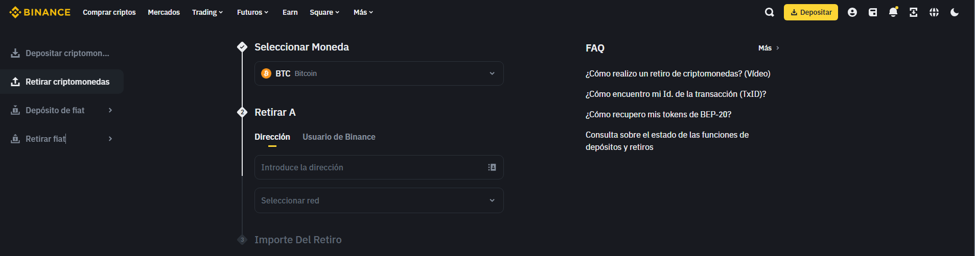 En ocasiones cuando copies y pegues la dirección de destino en el campo <<Introduce la dirección>> el Exchange detectara automáticamente la red a la cual pertenece, sin embargo no siempre es así, por eso es importante tener buena comunicación con la persona que recibirá las criptos y dejar muy claro tanto la moneda como la red que se utilizaran. Al elegir la red Optimism deberás rellenar el siguiente espacio: