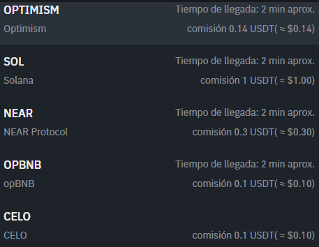 Volviendo al ejemplo, se eligió hacer la transacción de 20 USDT por la red de Optimism: