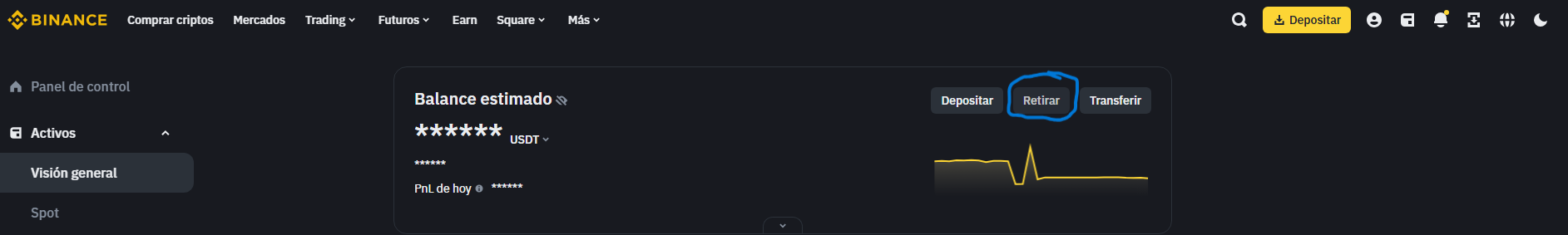 Sigamos tomando como exchange de ejemplo a Binance. Lo primero que debes pensar es en que moneda efectuaras el envío, ya que dependiendo de eso, las comisiones pueden ser mas altas o bajas así mismo el tiempo que se demore la transacción en completarse. Para este ejemplo supongamos que le quieres enviar 20 USDT a una persona que tiene una cuenta en el exchange Kucoin. Vas a ir a <> que lo encuentras dejando el cursor sobre el icono de cartera en la parte superior derecha de tu interfaz: