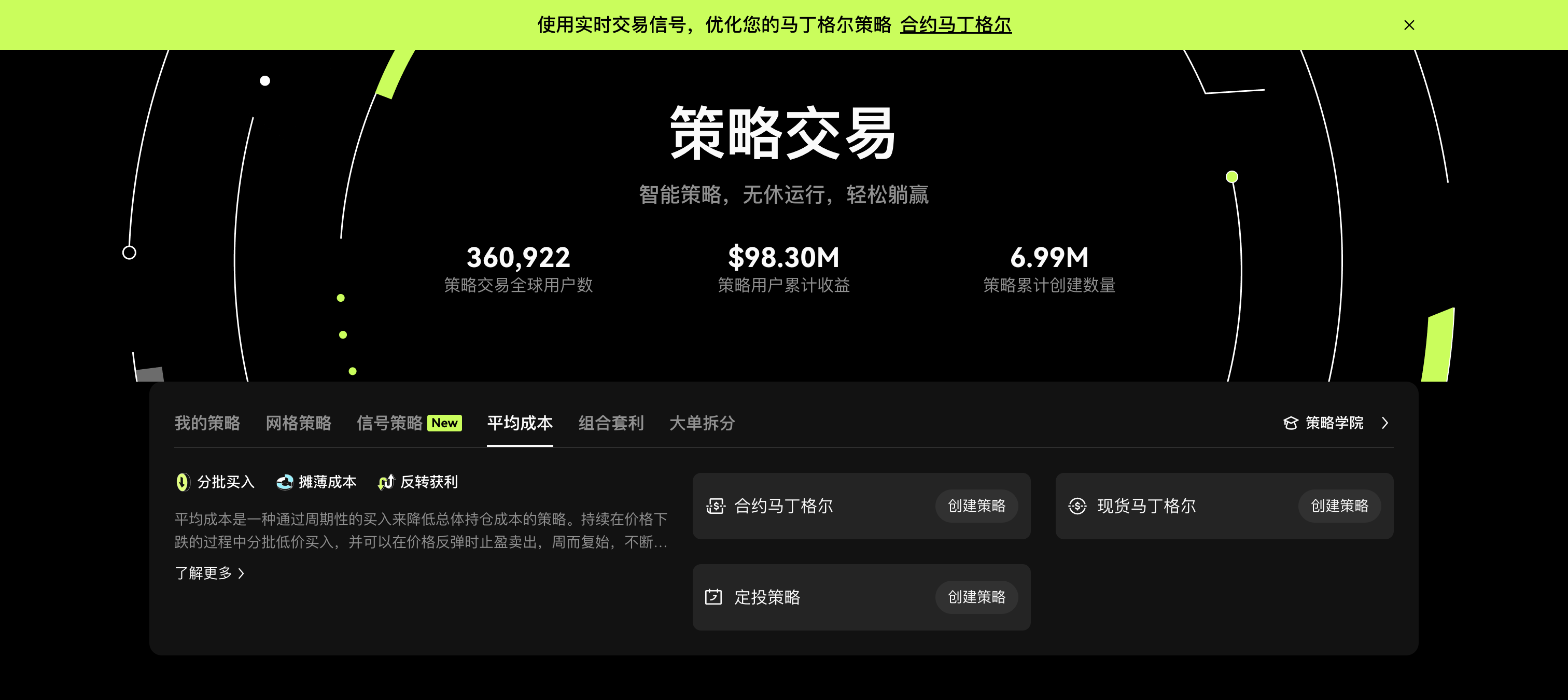 另外在平均成本里面还有一种定投策略,这种目前只支持现货交易