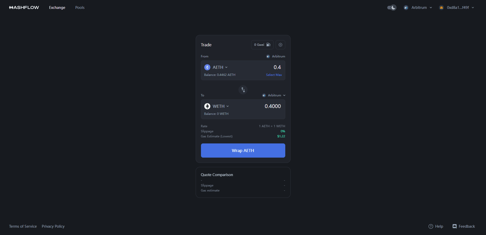 七、hashflow也是一个不错的dex,https://app.hashflow.com/ 操作同clipper