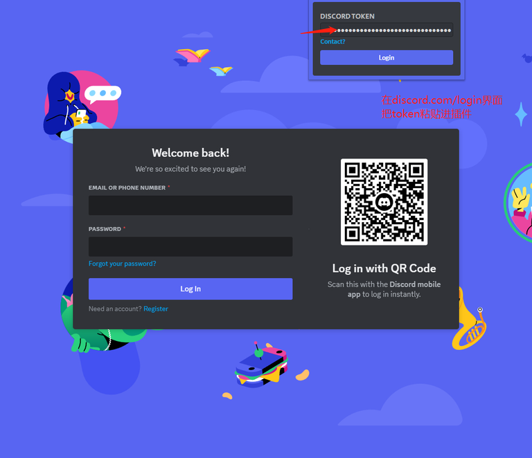 四.token登录 新手朋友一定要注意需要先进入Discord官网再使用插件登录 点击插件login按键即可登录