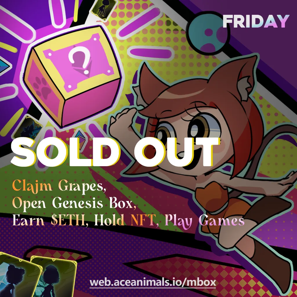 On September 6th at 8 am UTC, ACE Animals released 199 Free Genesis Boxes. To everyone’s astonishment, they sold out in just 30 minutes. It was only the first day, and it seemed that ACE Animals had underestimated the incredible enthusiasm of all our beloved community members.
