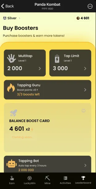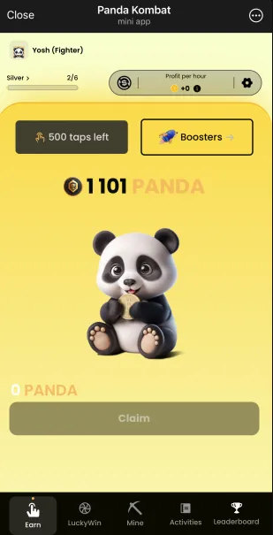 Tap to Earn: Tap on a Panda Fighter to accumulate Panda Points.
