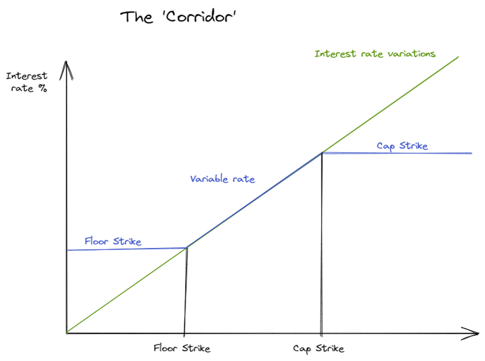 **Corridor:**允许通过放弃利用行权利率的变化,来减少或取消对冲借款的成本。