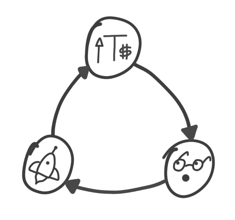 当一个代币增值,它会吸引早期投机者、开发者、创业者的注意。他们成为了协议的利益相关者,并为促进其成功进行财务投资。然后这些早期用户中的部分人,也许是由开始时的利润资助的, 会围绕该协议建立产品和服务,后面就会意识到协议的成功将会进一步的增加他们代币的价值。然后其中一些协议变得成功后,就会为网络带来新用户,也许还有VC和其它类型的投资者。这进一步增加了代币的价值,吸引了更多创业者的关注,进而产生更多的应用,以此类推。