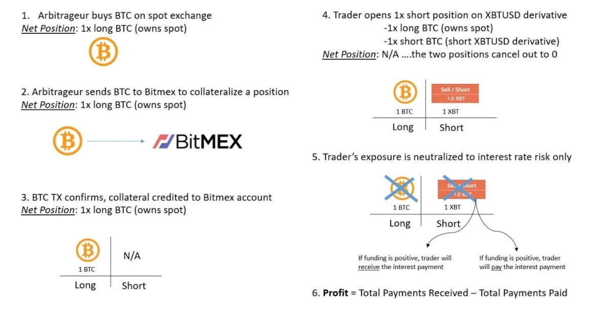 这里存在一个有趣的套利机会——交易者可以对冲定向风险,将资金费用从资产波动风险中隔离开来。以下是它的工作原理: