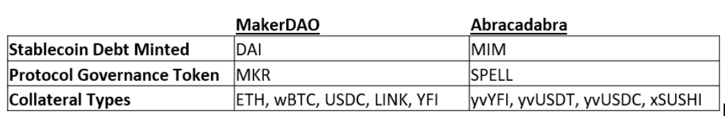 Abracadabra 提供固定利率,这和收取可变利率的 MakerDAO 不同。Abracadabra 也存在于多条链上,允许用户原生 MIM 跨链。然而, MIM 其中一个缺点是引入了额外的智能合约风险,因为抵押品最终保存在 Abracadabra 之外的收益生成协议中,相关的外部协议风险将对该协议用户产生直接影响。