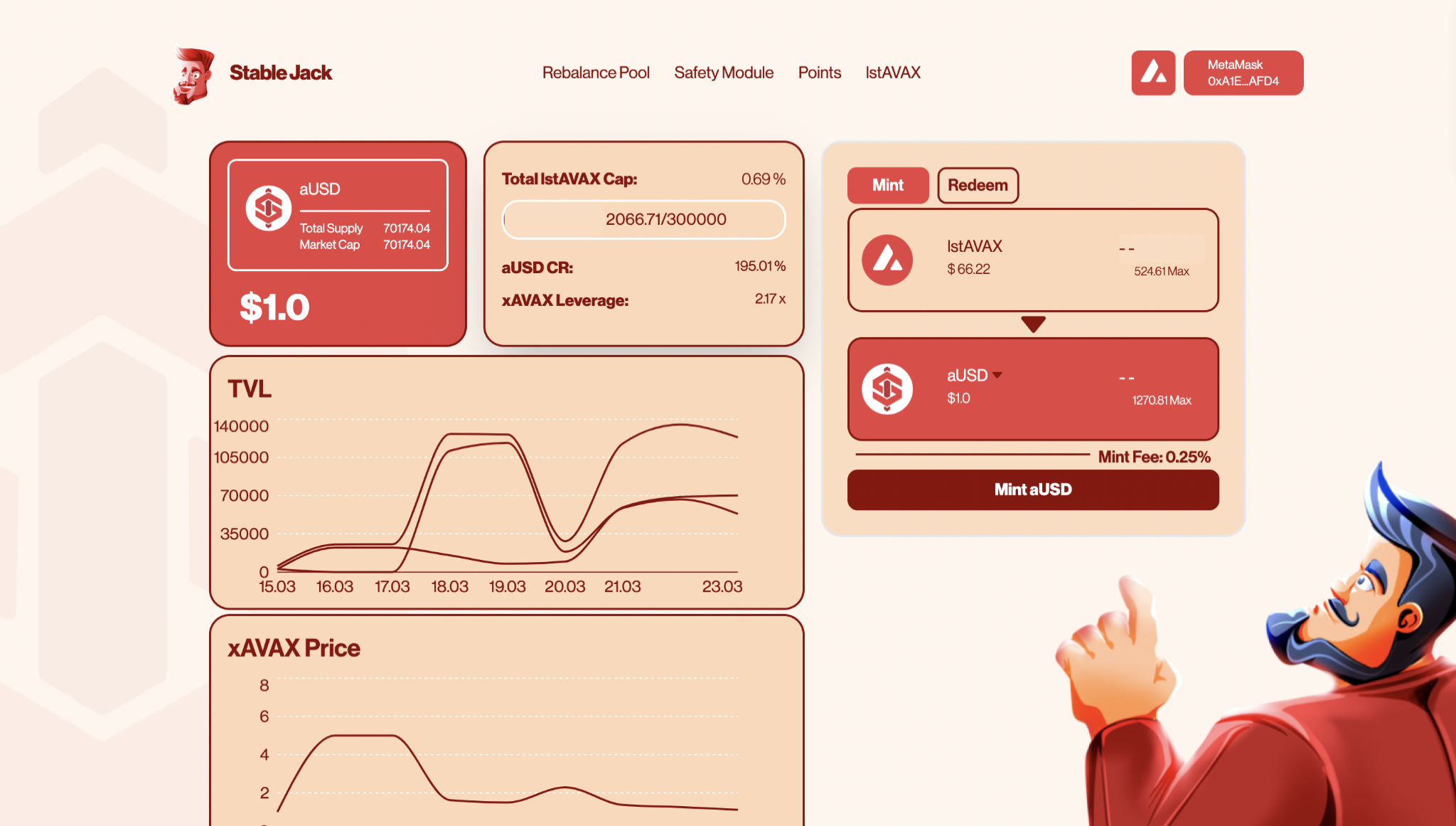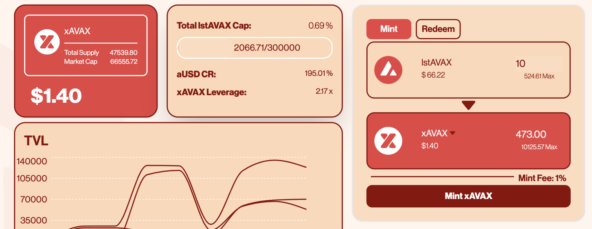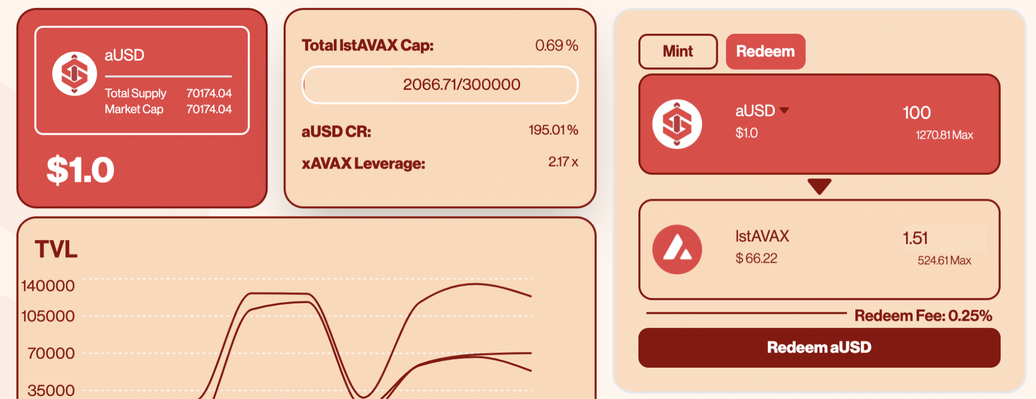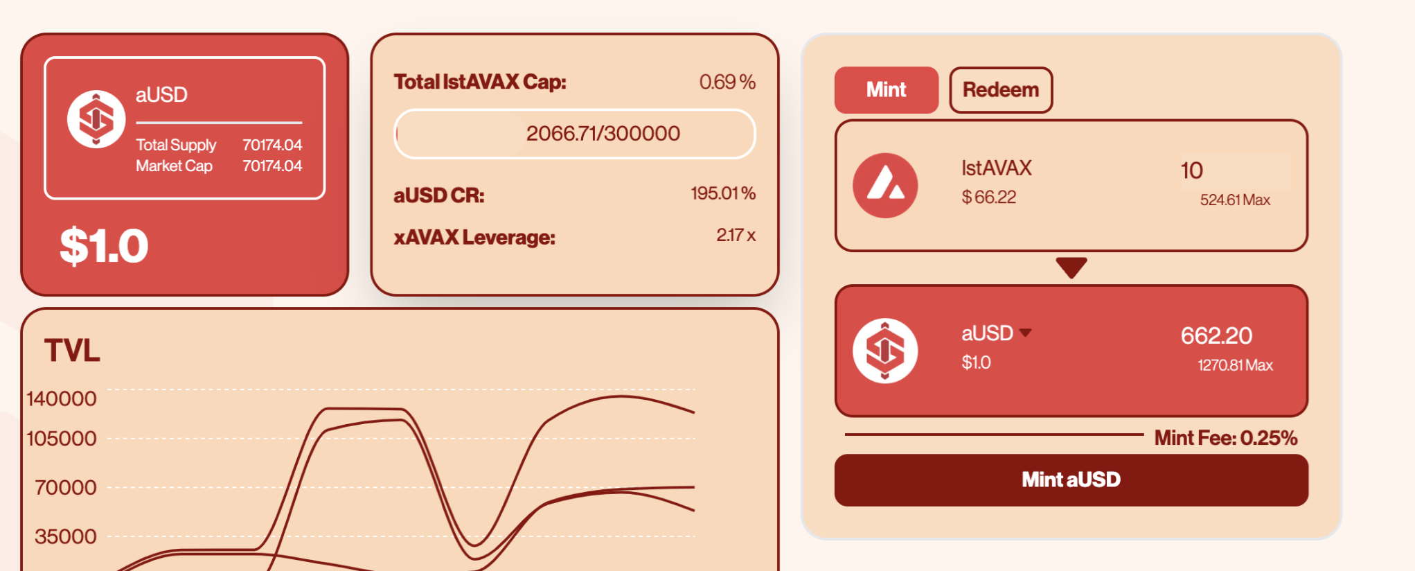Minting/redemption table for aUSD and xAVAX