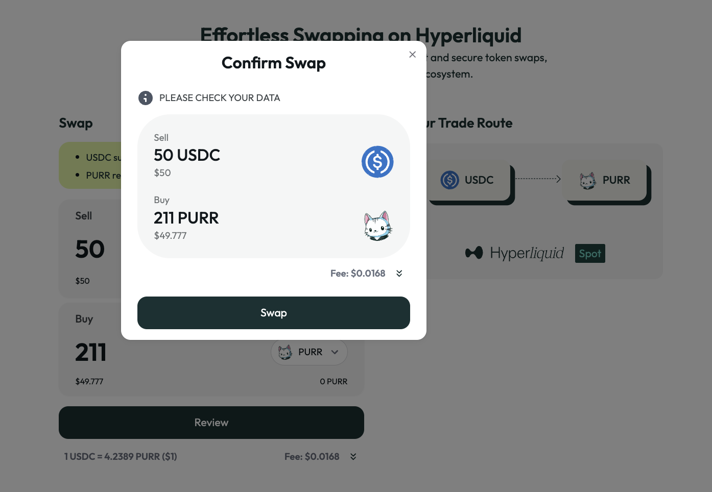 Over just 5 days of testing, our selected testers completed a total swap volume of $206,356. All swaps were executed directly on Hyperliquid mainnet, providing valuable real-world feedback.