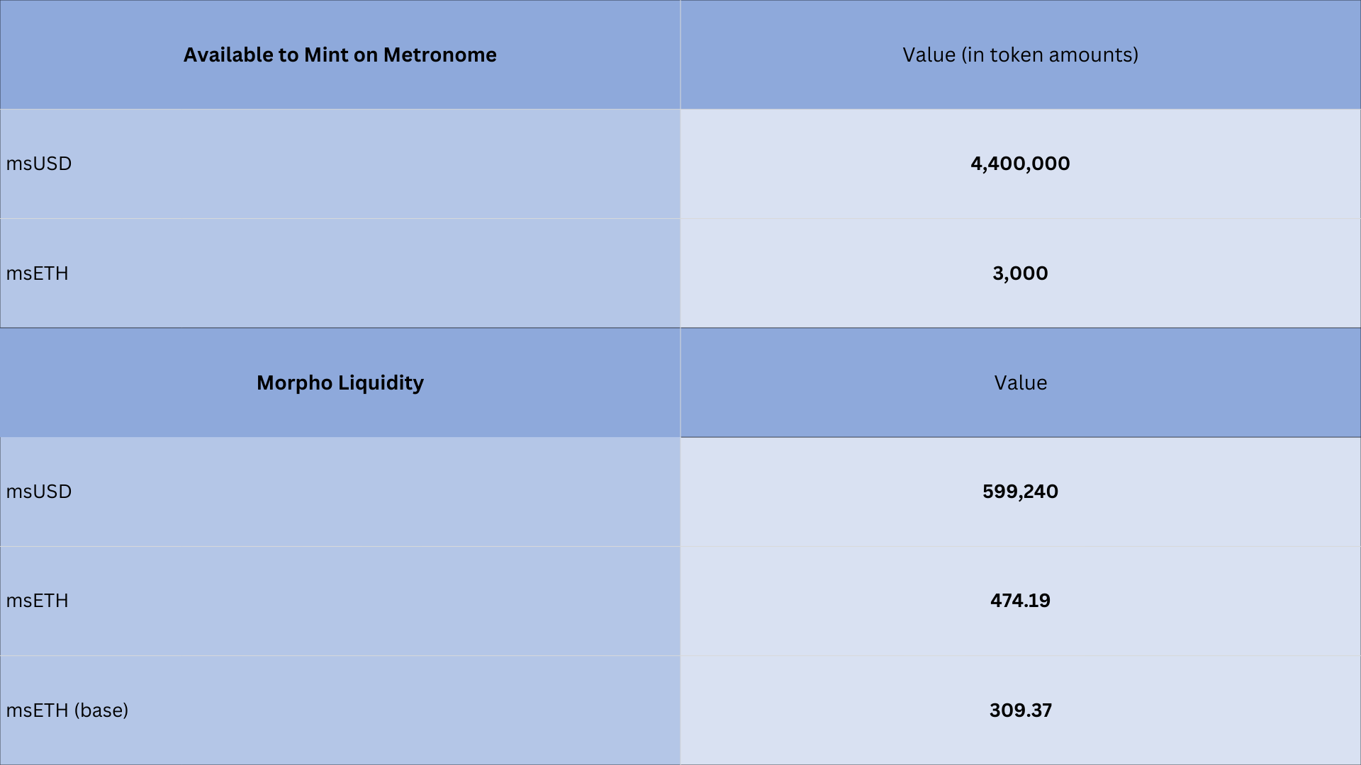 Mint allowances on Metronome and available Morpho liquidity show that the system has the capacity to absorb more minting, and borrowing. This is important in order to maintain the TVL growth of the past few months, and helps keep pegs orderly via arbitrage.
