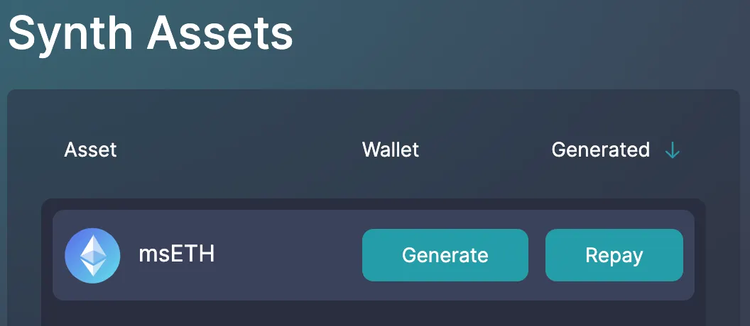 2. Hover over your chosen synth asset and click “Repay”.
