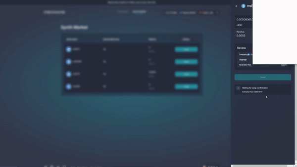 2. In the swapping menu, choose the synths you wish to swap and input the amounts you are comfortable with, then hit “Swap”.