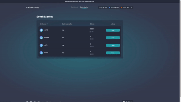 Learn how to use the Synth beta and gain knowledge on how to create and swap assets via the Synth market.