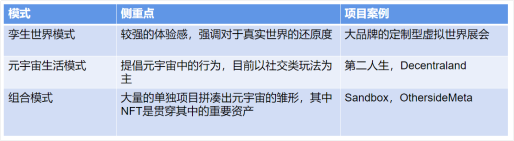 目前元宇宙从用户体验出发,模式主要分为3种: