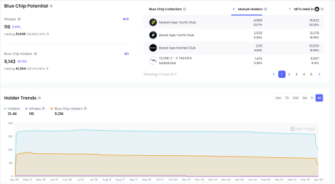 2)对比分离后原猴地和新猴地的持有数据,蓝筹和whale玩家并没出现流出;